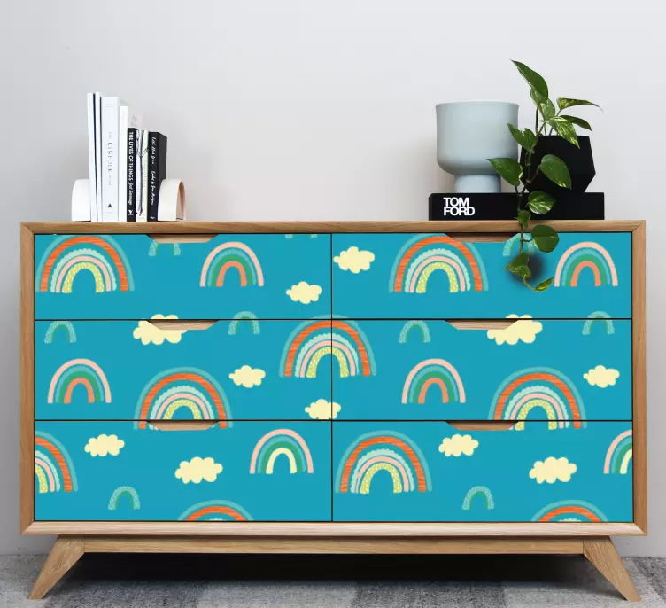 Brighten up your living space with our Furniture sticker colorful rainbow designs! This whimsical design features vibrant rainbows and fluffy clouds, creating a playful pattern that is sure to bring joy to any room. Perfect for adding a splash of color to your furniture, these stickers are an easy way to transform your home decor into something magical!