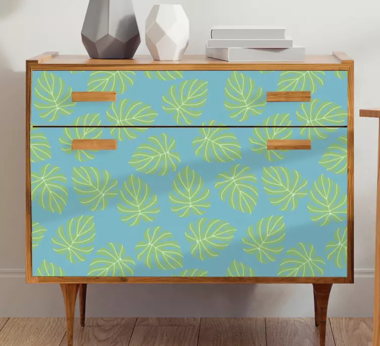 Transform your living space with our stunning Furniture sticker leafy pattern design. This beautiful design features an array of lush leaves and tropical elements that evoke the serenity of nature. The vibrant blue and green hues create a lively atmosphere, making it a perfect addition to any furniture setup. With its intricate pattern, this decorative piece seamlessly blends elegance and tranquility into your home.