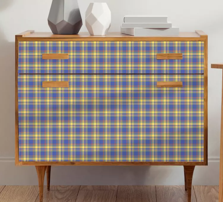 Elevate your living space with our Furniture sticker modern plaid design. This stunning design features a vibrant tartan pattern that beautifully combines fabric textures with colorful geometric shapes, making it the perfect addition to any piece of furniture. Transform your home decor and let your personality shine through with this eye-catching plaid design!