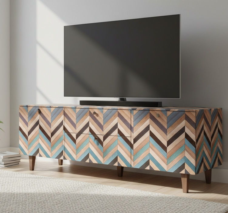Reference: A54874Transform your space with our Furniture sticker multicolor wood herringbone design, a stunning visual treat that beautifully mimics the timeless elegance of herringbone wood patterns. This design features a vibrant assortment of colors that come together in a harmonious blend, bringing warmth and personality to any room. The intricate detailing captures the essence of traditional wood craftsmanship, making it an ideal choice for those looking to elevate their home decor.