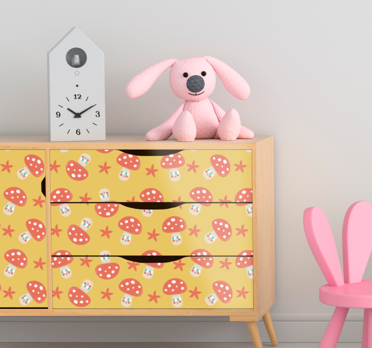 Introducing our Furniture sticker mushroom pattern design, a delightful addition to any child's room! This whimsical design features enchanting fly agaric mushrooms surrounded by sparkling stars against a cheerful yellow background. Perfect for children's decor, these playful mushroom designs will spark imagination and joy, transforming your furniture into a magical space!