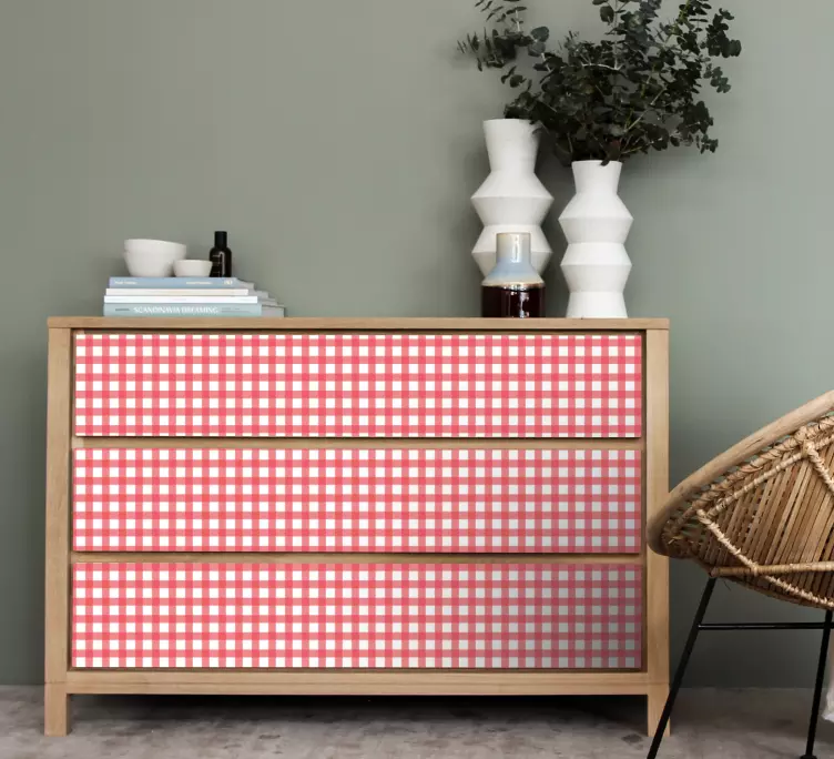 Furniture sticker red checkered pattern