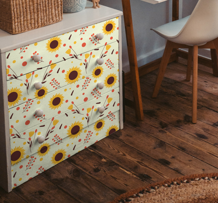 Transform your living space with our Furniture sticker sunflower pattern design, a vibrant and cheerful representation of nature that brings the beauty of sunflowers right into your home! This colorful floral pattern is perfect for adding a touch of warmth and liveliness to any piece of furniture, making it an ideal choice for those who appreciate the charm of nature.
