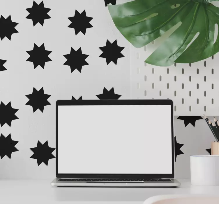Reference: A47990Featuring a series of black star shapes, this design adds a dynamic touch to any space. The geometric forms create a playful contrast against a light background, enhancing visual interest while maintaining a contemporary aesthetic suitable for various environments.