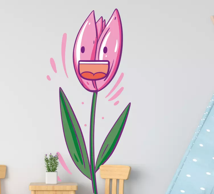 Introducing our vibrant Happy tulip design flower wall sticker, a delightful illustration that brilliantly captures the essence of fun and playfulness. Featuring cheerful tulips with expressive screams of joy, this design brings a sense of happiness to any space. The playful nature of the flowers is sure to uplift your mood and add a whimsical touch to your decor!