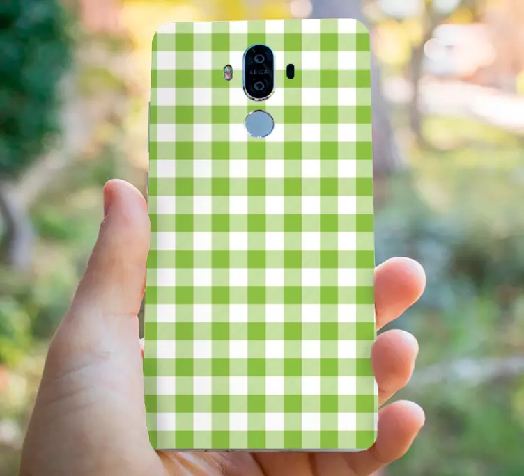 Introducing the Huawei sticker green checkered pattern, featuring a delightful design characterized by a charming plaid aesthetic reminiscent of a classic tablecloth. The vibrant green gingham pattern adds a refreshing touch to your phone, making it stand out while offering a sense of warmth and nostalgia.