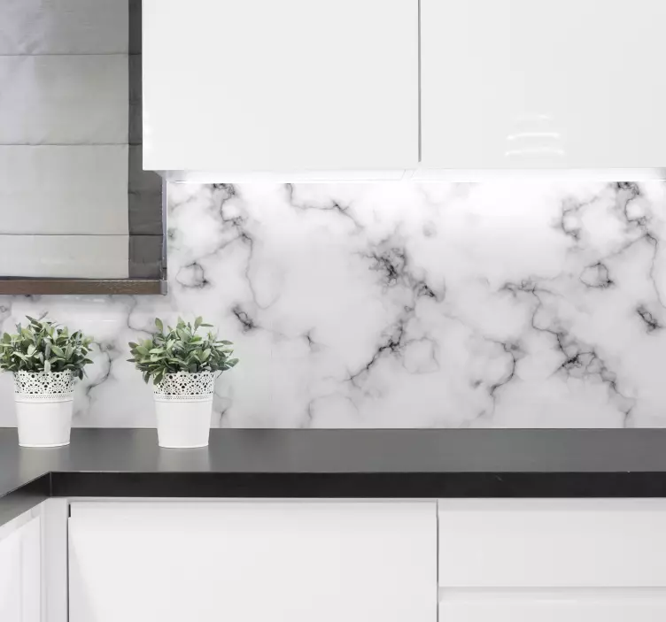 Transform the look of your kitchen effortlessly with our exquisite wall sticker that imitates marble. This elegant and durable wall sticker in white marble adds a touch of sophistication to your kitchen decor. The pattern imitates white marble, and you can personalize it to any size you desire.
