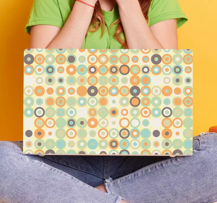 Introducing our Laptop skin colorful circular design, a vibrant masterpiece that features a captivating array of circles and geometric patterns inspired by the playful aesthetics of the 70's. This abstract and fun design will transform your laptop into a colorful canvas, making it a perfect accessory for anyone looking to add a splash of creativity to their tech!