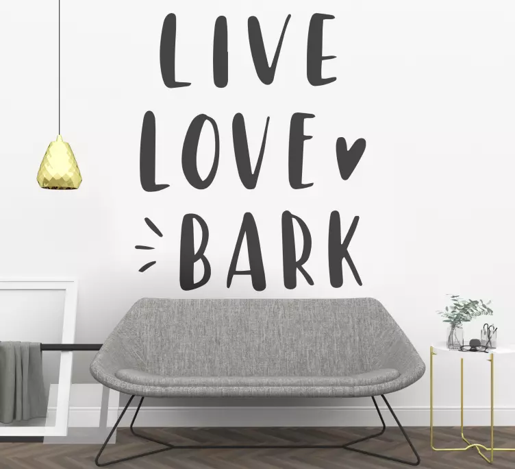 The Live love bark quote sticker is a delightful combination of style and inspiration, featuring a playful design that captures the essence of our beloved pets. With the words 'live', 'love', and 'bark' artfully arranged, this decorative piece is perfect for any pet lover's home. The text is both fun and motivational, making it a wonderful addition to your home decor. It serves as a daily reminder to cherish the joy our dogs bring into our lives!