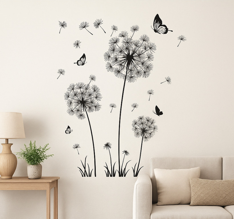 Reference: A54035Transform your space with our stunning Living room wall sticker dandelion butterfly, a captivating design that features delicate dandelions and graceful butterflies, bringing a touch of nature indoors. This exquisite wall sticker effortlessly combines elegance and whimsy, making it a perfect addition to any living room. Its vibrant colors and intricate details will evoke feelings of joy and serenity, allowing you to create a beautiful atmosphere in your home!