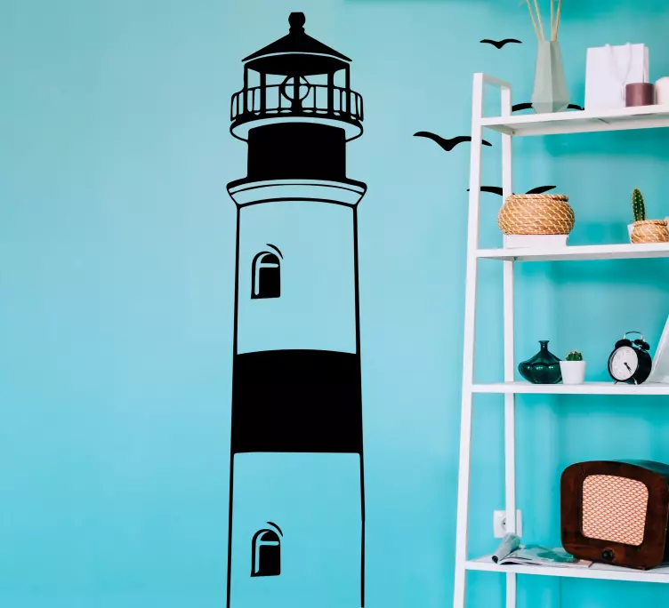 Introducing our stunning Location sticker lighthouse silhouette, a perfect blend of nautical charm and coastal elegance! This design features a graceful lighthouse surrounded by birds in a striking silhouette, making it an ideal piece for home decor enthusiasts. The enchanting imagery captures the essence of the sea, inviting a sense of tranquility and adventure into any space. Add a touch of coastal beauty to your home with this delightful sticker!