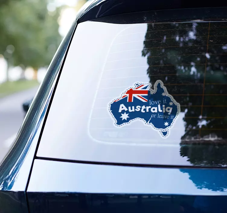 Reference: A38527This unique Australian flag sticker is the perfect way to show your pride and patriotism! With its vibrant colors and bold "Love It or Leave It" text, this design is sure to make a statement on any car, laptop, wall, or flat surface. Made with quality materials and a built-in adhesive, you can rest assured that this product will last for years. Plus, it's easy to install and can be custom-sized to fit your needs.