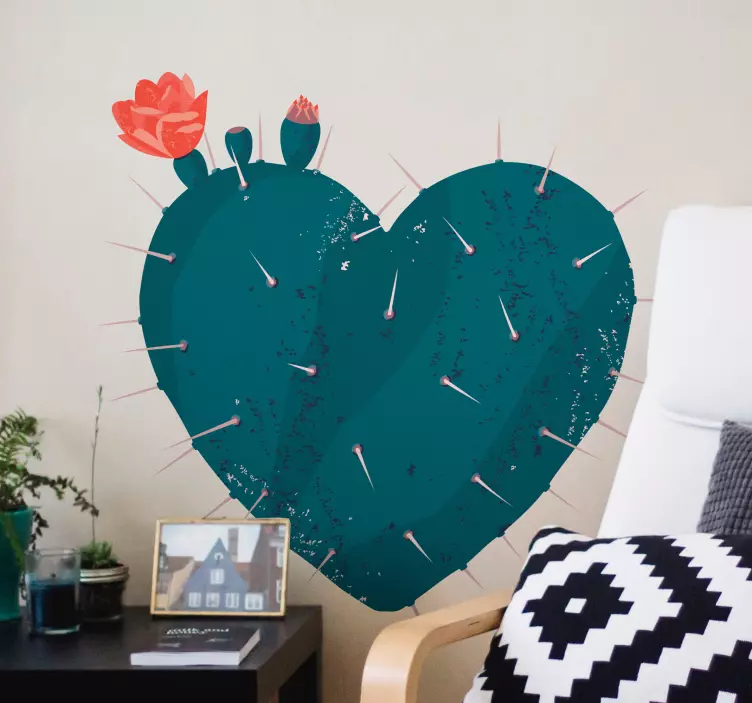 Transform your space with our stunning Nature wall sticker heart-shaped cactus. This delightful design features an intricately illustrated heart-shaped cactus adorned with charming pink flowers and thorns, bringing a touch of vibrant nature into your home. The combination of plants and heart shape creates a unique and inviting atmosphere, making every corner feel alive!