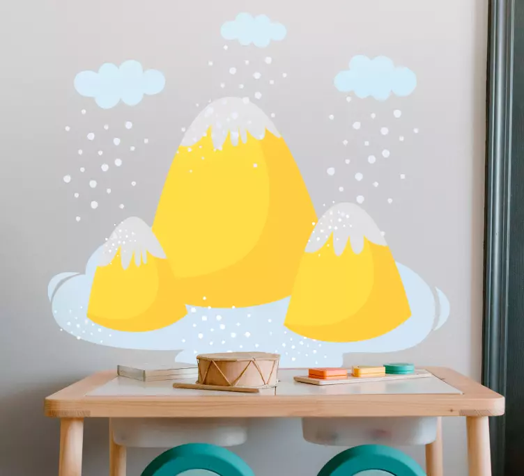 Transform your space with our stunning Nature wall sticker yellow mountain peaks. This whimsical design features vibrant yellow mountain peaks, soft clouds, and snow-capped summits, all set against a backdrop of breathtaking nature. The illustration captures the essence of the great outdoors, inviting tranquility and inspiration into your home!