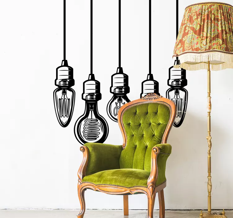 Reference: A47309A stylish arrangement of hanging light fixtures offers a contemporary touch to living spaces. The design features various bulb shapes, adding visual interest and charm. Perfect for enhancing the ambiance in any room, these elements complement furniture and contribute to a chic atmosphere.