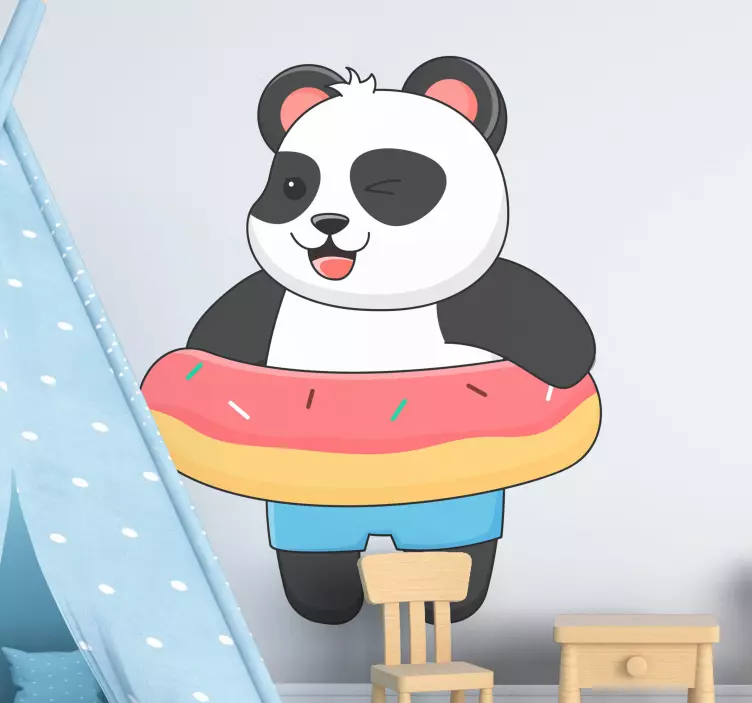 Introducing our Pet sticker panda with donut, a delightful fusion of whimsy and charm! This enchanting design features a playful cartoon panda bear joyfully enjoying a donut while lounging on a rubber ring. Perfect for children's rooms, this cute animal design adds a fun and vibrant touch to any space, inspiring smiles and creativity!