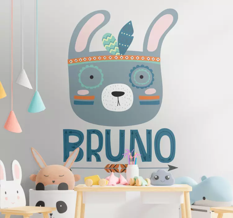 Transform your child's space into a vibrant and playful sanctuary with our Playful animal face wall sticker for kids. This delightful design features charming nordic elements with a lovable rabbit face, creating a customisable experience that allows you to add your child's name. Bursting with color and fun, this bunny-themed wall sticker brings joy and creativity to any room, making it the perfect addition to your child's decor!