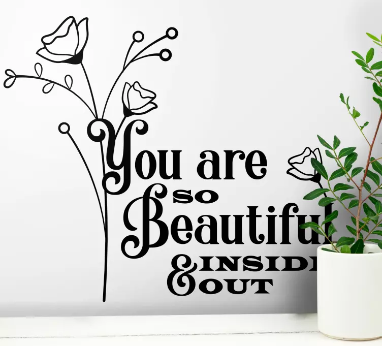Introducing our stunning Quote sticker you are so beautiful inside, a beautifully designed piece that combines floral elements, inspirational text, and a positive message to brighten any space! The delicate flowers and uplifting quote create an atmosphere of beauty and inspiration, making it the perfect decorative item for those who appreciate both art and motivation.