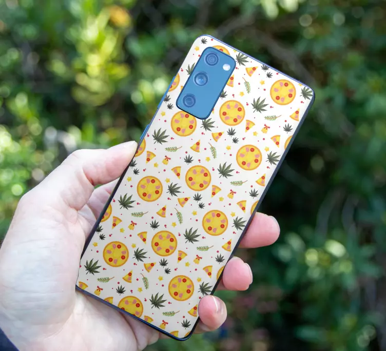Transform your phone with our Samsung stickers cheesy pizza delight! This vibrant design features a playful pattern of colorful pizza slices adorned with pepperoni and marijuana leaves, bringing a fun, cheesy charm to your smartphone. The eye-catching graphics are perfect for those who love a quirky touch, making your device stand out in style!