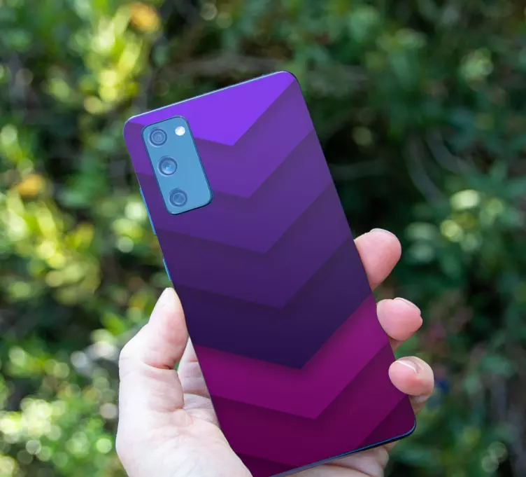 Transform your Samsung mobile phone with our stunning Samsung stickers chevron color blend. Featuring a mesmerizing gradient of purple and pink lines, this adhesive graphic design adds a splash of color and personality to your device! Not only does it enhance the aesthetics of your phone, but it also protects it from scratches and bumps, ensuring it stays looking new.