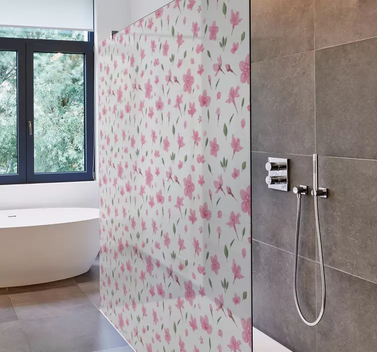 Transform your shower experience with our stunning Shower screen sticker botanical design creation. This exquisite design features a beautiful watercolour pattern in shades of pink, adorned with intricate floral elements that evoke the serenity of nature. Each floral detail captures the essence of a botanical garden, bringing a refreshing touch to your bathroom decor!