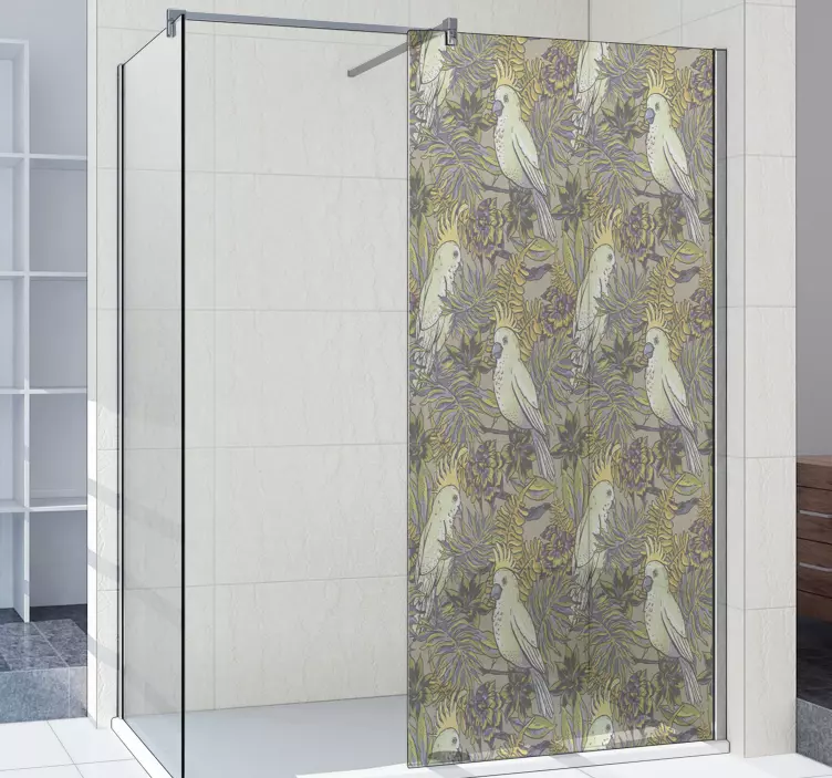 Transform your bathroom into a serene oasis with our Shower screen sticker with elegant bird designs. This exquisite design features vibrant parrots perched among lush leaves and delicate flowers, bringing a touch of nature indoors. The intricate floral patterns create an inviting atmosphere that is both decorative and elegant, making it the perfect addition to your shower screen!