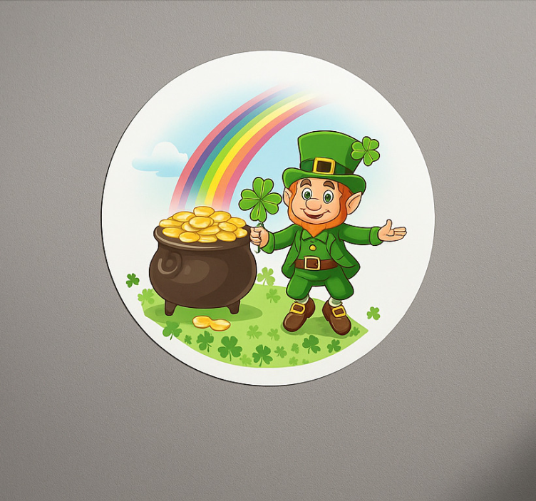 The St Patricks Day sticker lucky golden pot leprechaun is perfect for transforming your space into a festive haven! Whether you're hosting a St. Patrick's Day party or simply want to celebrate the season, this St Patricks day sticker brings joy and excitement to any environment. Imagine the smiles on your guests' faces as they see this cheerful decoration that perfectly embodies the luck and fun of the holiday!
