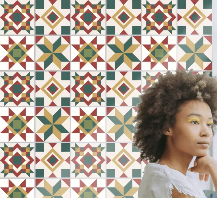 Transform your space with our Tile sticker geometric pattern design, featuring an enchanting blend of stars, geometric forms, and vibrant colors. Each tile exudes a unique charm through abstract shapes and symmetry, reminiscent of classic cement tiles but with a modern twist. Elevate your home decor with these captivating designs that effortlessly enhance any room!