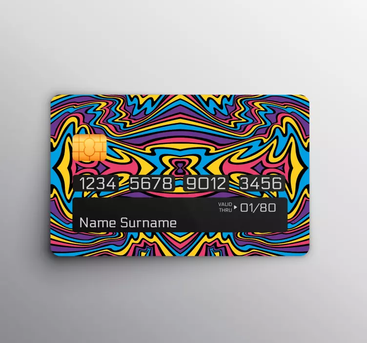 Enhance the appearance of your bank card with our high-quality vinyl decal. The vivid colors and groovy lines will add a touch of style and uniqueness to your card. Say goodbye to boring bank card covers and choose from our extensive collection of designs that reflect your personality and sense of humor. Visit our website for more options and explore the wonderful world of bank card cover decals. Applying the decal is a breeze, and you won't have to worry about creases or bubbles. Upgrade your bank card today!