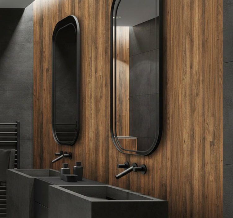 Reference: A53882Transform your bathroom into a serene oasis with our Wall decal for bathroom walnut wood effect. This stunning design features a rich walnut wood effect that brings warmth and elegance to your space, creating a cozy atmosphere. The intricate details of the design mimic the natural beauty of wood, providing a stylish yet calming backdrop for your bathroom decor.