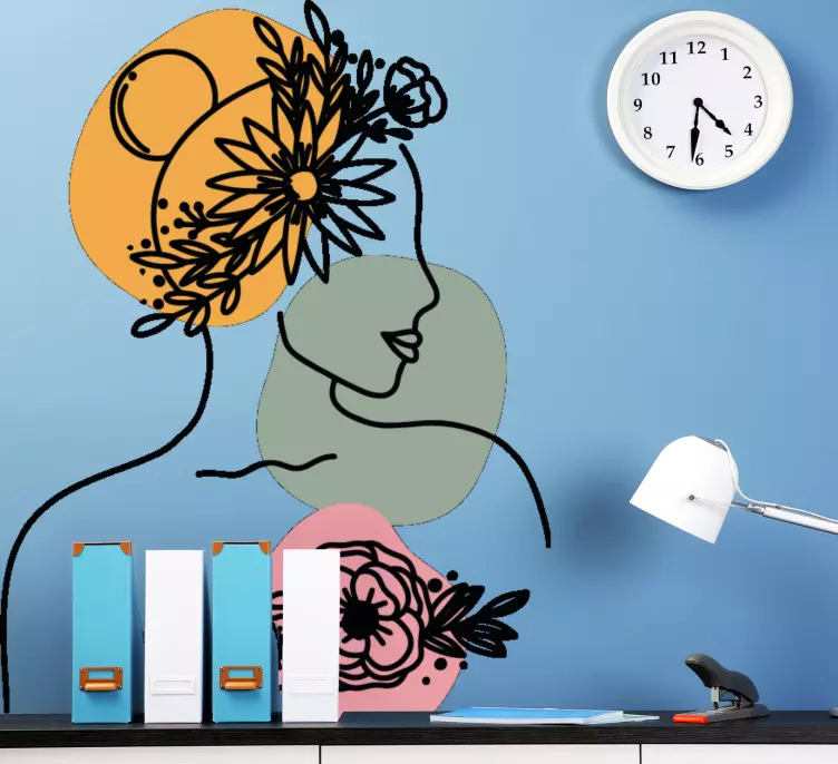 Transform your space with our stunning Wall sticker elegant female silhouette, featuring a captivating lineart design that beautifully portrays a woman's face in an abstract and minimalist style. The elegant silhouette is decorated with delicate floral elements, enhancing the overall portrait with a touch of femininity and sophistication. This artistic wall sticker is perfect for those who appreciate modern design and want to add a unique flair to their home or office decor!