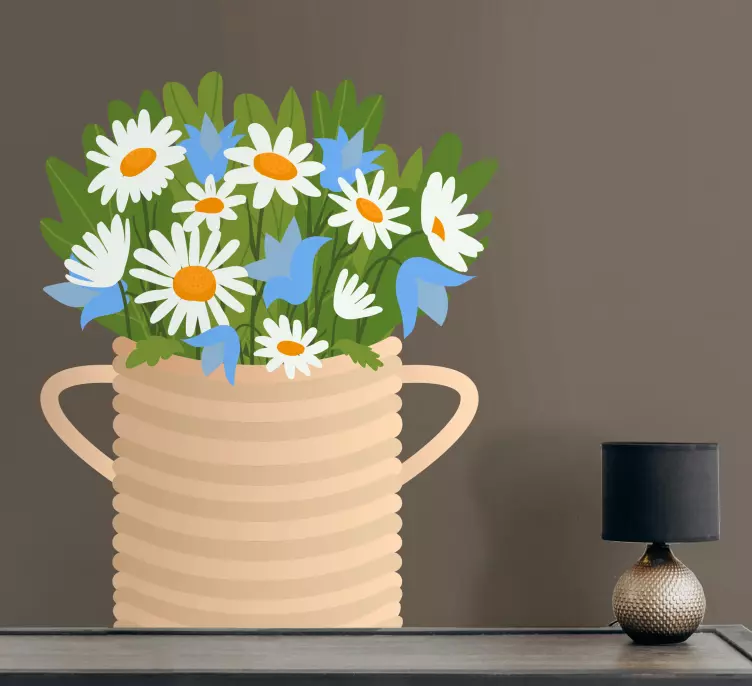 Introducing our stunning Wall sticker floral arrangement vase, a beautiful design that brings nature indoors with its captivating vase filled with vibrant flowers. This exquisite artwork features charming daisies with delicate blue petals and lush green leaves, creating a harmonious floral scene that brightens any space. Perfect for those who appreciate the beauty of nature, this wall sticker transforms your home into a lively oasis!