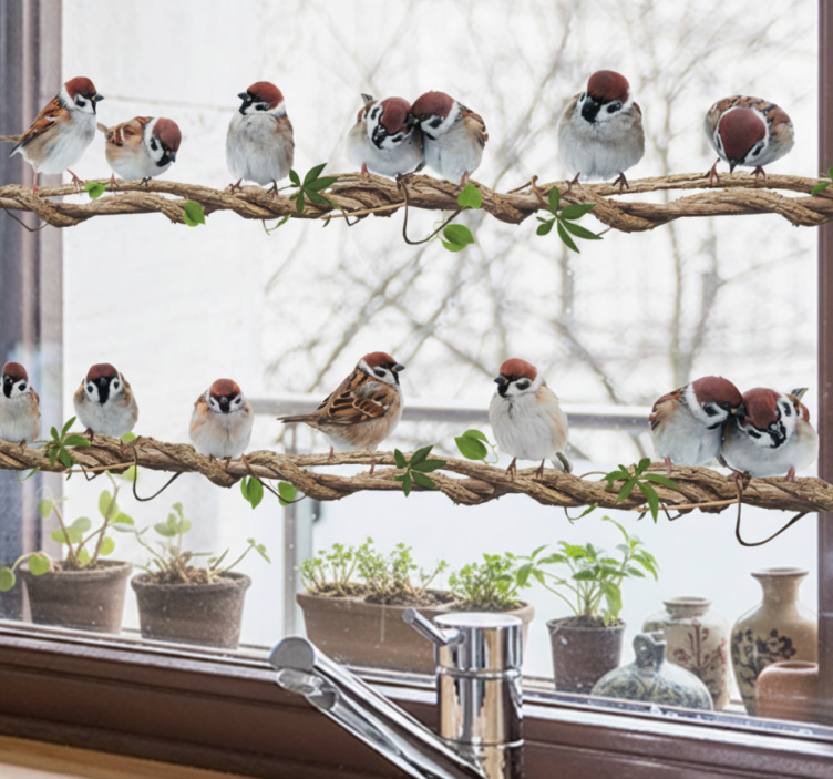Window sticker house sparrows on branches