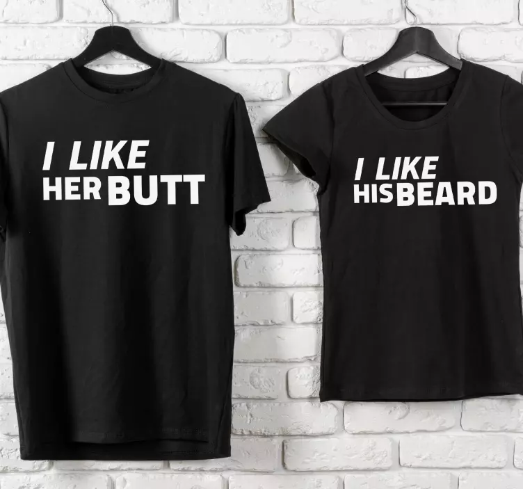 Introducing our Couple t-shirts couple humor tees, a delightful blend of laughter and style! Each shirt features a unique design that playfully incorporates elements like a funny text, a butt, and a beard, all in a chic monocolor scheme. Crafted in timeless black, these matching tees are perfect for couples who love to express their humor together. Whether you're out on a date or lounging at home, these shirts will bring a smile to your faces!