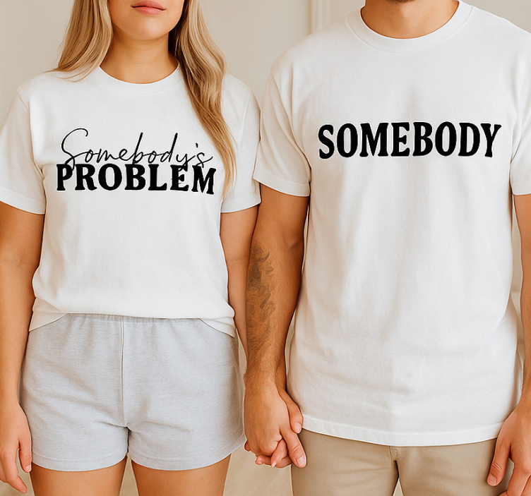 Choosing the Somebody's problem couple t-shirts is a decision that resonates beyond just fashion. These couple t-shirts symbolize love, laughter, and the unique bond you share with your partner. They are not just clothing; they are a fun way to express your relationship, ignite conversations, and create unforgettable memories together! Wear them on date nights, casual outings, or simply when lounging at home. Investing in these couple t-shirts means celebrating your connection in a light-hearted and stylish way!