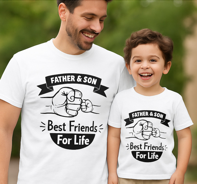 Introducing our Father and son t-shirt paternal fist-bump design, a heartwarming tribute to the unbreakable bond between fathers and sons! This unique design captures the essence of camaraderie with an artistic depiction of a fist-bump, symbolizing strength, support, and love. Made from 85% cotton and 15% viscose, this t-shirt offers comfort and style. With a classic round neck and short sleeves, it’s perfect for casual outings or playtime, available in versatile black and white colors.