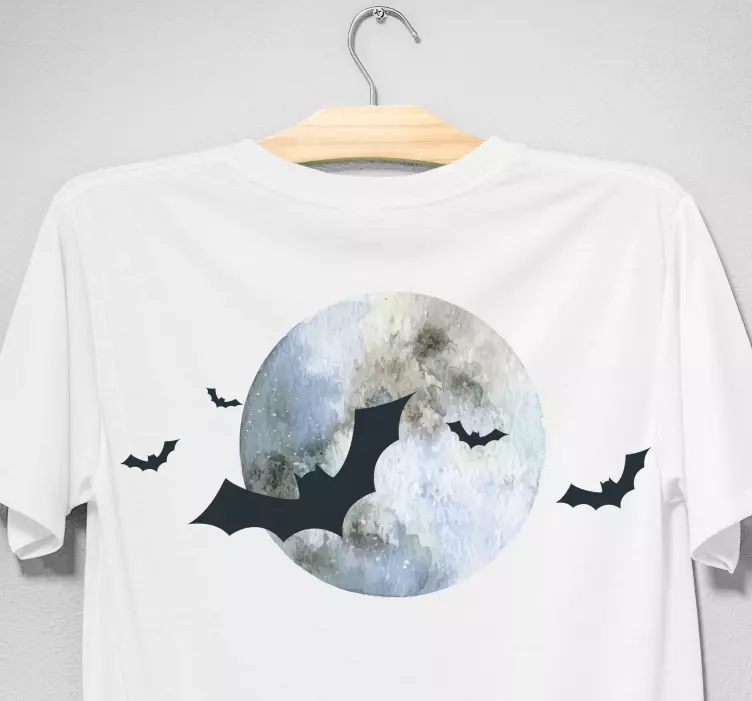 Embrace the spooky spirit of Halloween with our Halloween t-shirt bat and moon design! Featuring an enchanting illustration of bats flying across a luminous moon, this graphic captures the essence of a dark, mystical night. Perfect for those who love the thrill of Halloween, this shirt combines artistry with a playful vibe, making it a must-have for your festive wardrobe!