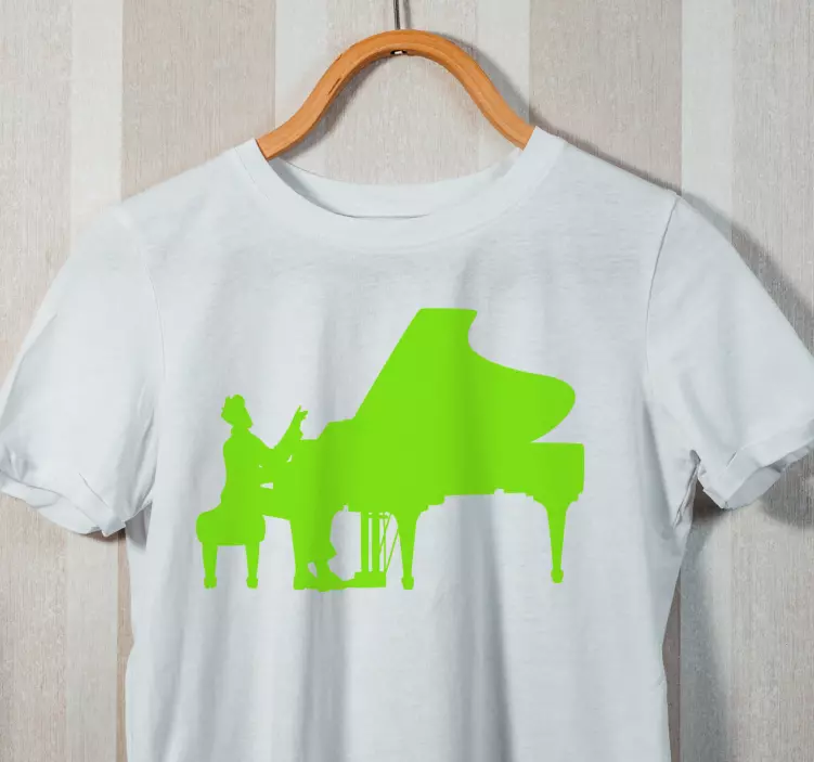 The Piano performer silhouette t-shirt features an elegant graphic design showcasing a pianist immersed in a musical performance. This creative artwork highlights the beauty of music, capturing the essence of an artist at work with a striking silhouette of a musician playing the instrument. With its sophisticated look, this t-shirt is perfect for anyone who appreciates the art of music!