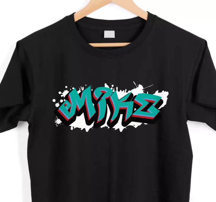 Introducing our vibrant T-shirt with name bold name design, a unique piece that effortlessly blends graffiti, street art, and urban art into a playful style! This exceptional design features bold graphic typography that pops against the rich black fabric, creating an eye-catching look. The customizable aspect allows you to add your own name, making it a personal statement that stands out in any crowd. With its striking vibrant colors and urban flair, this t-shirt is perfect for those who appreciate graffitti and want to express their individuality.