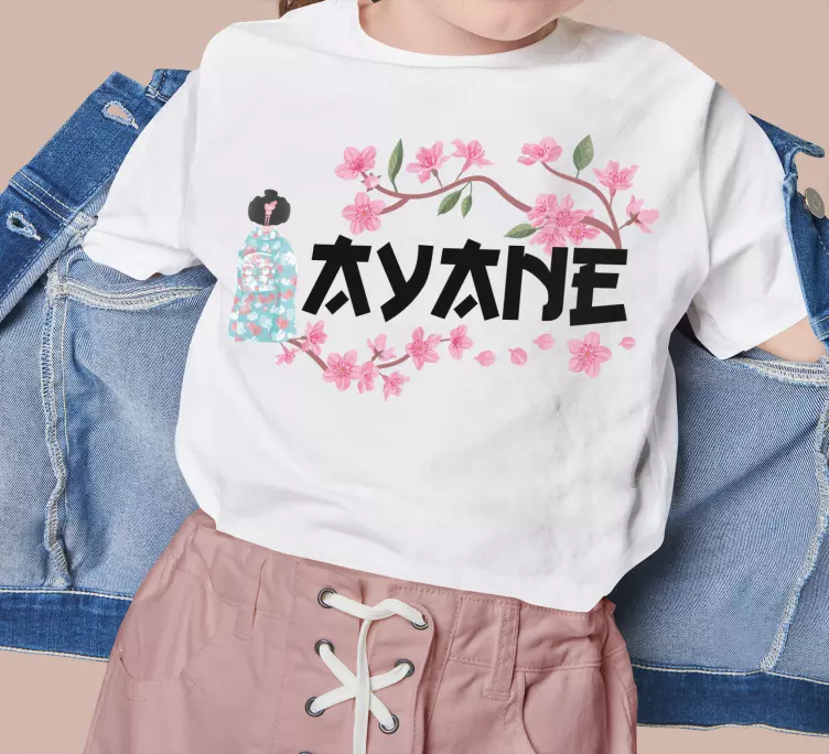 T-shirt with name cherry blossom kokeshi