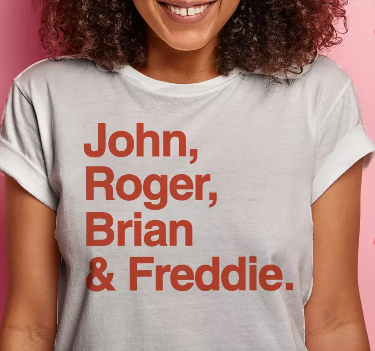 Introducing our stunning T-shirt with name names shown in bold, where design meets personalization in a unique way! This trendy piece features a captivating graphic design that showcases queen and band elements, embodying the spirit of music and celebrating musicians. The typographic display of famous names adds a personal touch, making it perfect for expressing friendship and family bonds. With its casual style, this T-shirt is a must-have for anyone looking to elevate their wardrobe!