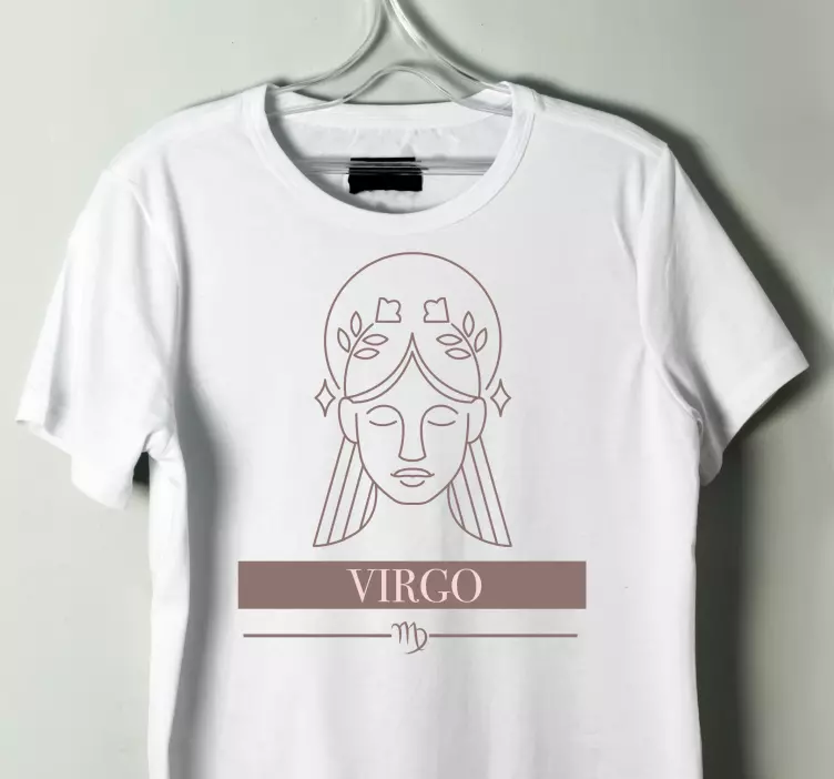 Reference: T4947This design features a minimalist representation of the Virgo zodiac sign. The illustration showcases a serene female figure adorned with leaves, complemented by elegant line work. The name 'Virgo' is prominently displayed, creating a harmonious effect suitable for astrology enthusiasts.