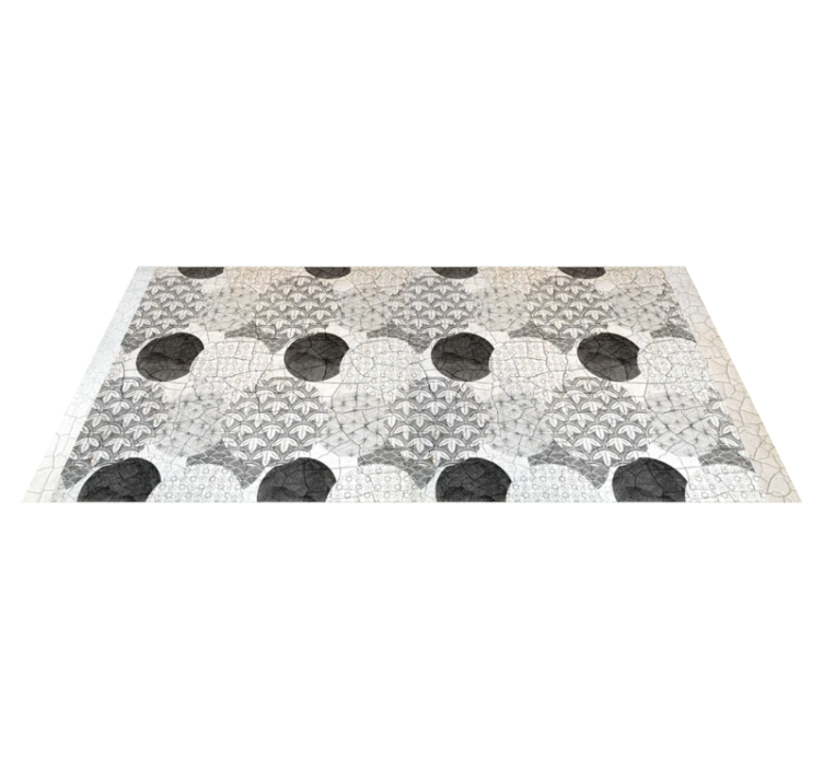 Transform any room or outdoor space with this stunning oriental inspired vinyl carpet. Featuring geometric shapes including circles and abstract designs, this carpet showcases famous Asian style art such as the Japanese wave and sun. The grey and black color tone is suitable for any room in the house, making it a versatile addition to your decor.