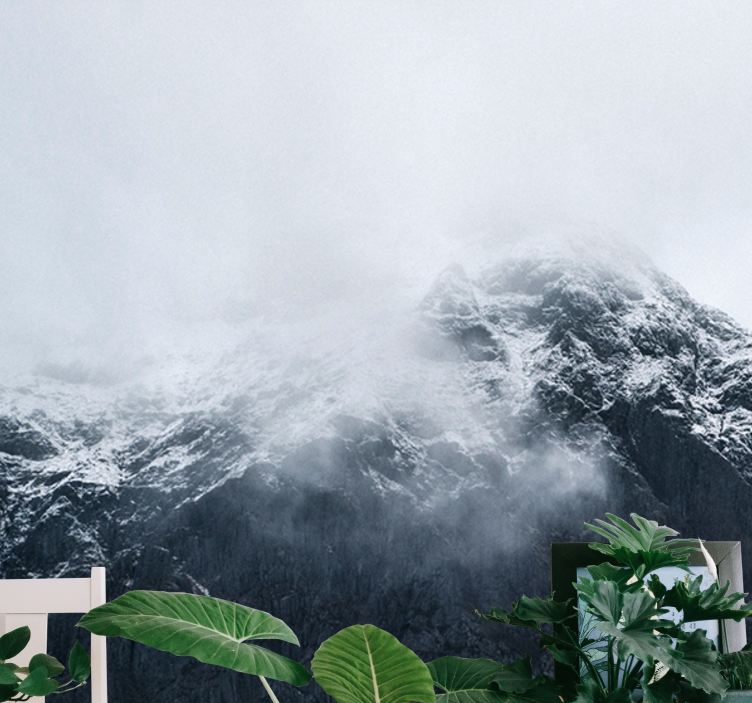 Transform your space with our stunning Mountain wall mural icy summit of the mountain, where the beauty of nature comes alive! This breathtaking design features a majestic icy summit, enveloped in a soft blanket of fog, complemented by snow-capped peaks and dramatic clouds. The captivating landscape is a perfect blend of photography and artistry, making it an ideal choice for nature enthusiasts seeking to bring the tranquility of the mountains indoors.