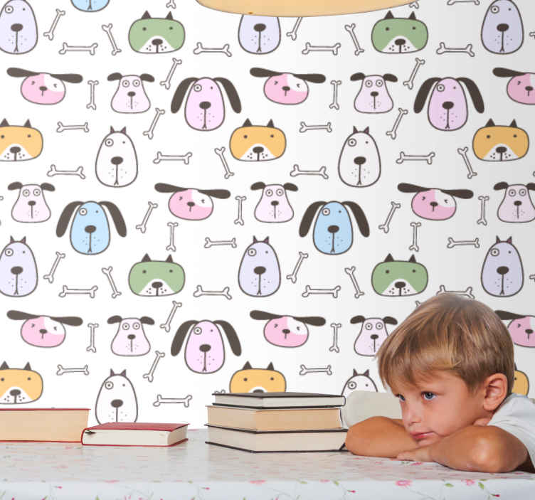 Reference: P7707A playful array of cartoon dog illustrations accompanied by whimsical bones, fostering a friendly and joyful atmosphere. Ideal for a youthful space, each canine character brings a unique charm, perfect for inspiring imagination and a sense of companionship.